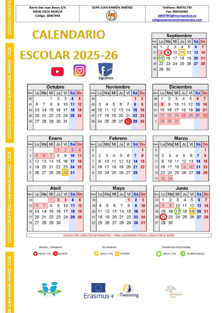 Aquí os dejamos el calendario escolar para el curso 2025-2026.