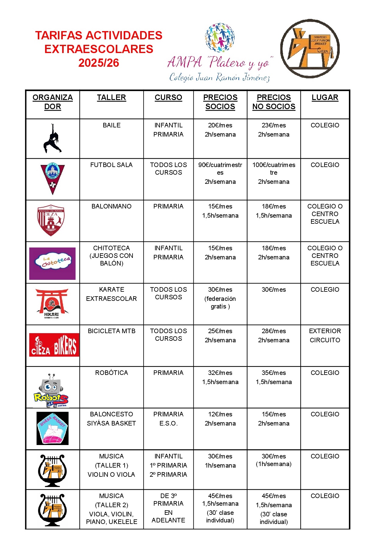 Actividades extraescolares 25-26